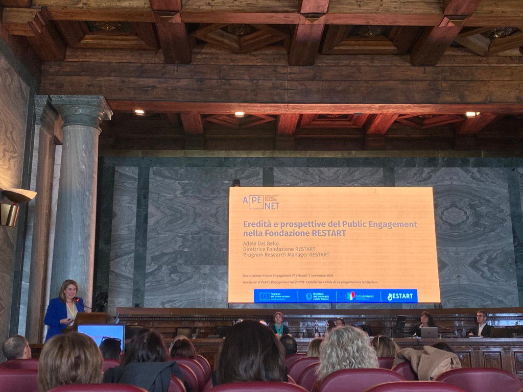La Direttrice della Fondazione RESTART, Adele Del Bello, ha partecipato il 7 novembre all’evento Destinazione Public Engagement organizzato dalla Rete italiana degli Atenei ed Enti di Ricerca per il Public Engagement – APEnet, presso l’Università degli Studi di Napoli Federico II.
